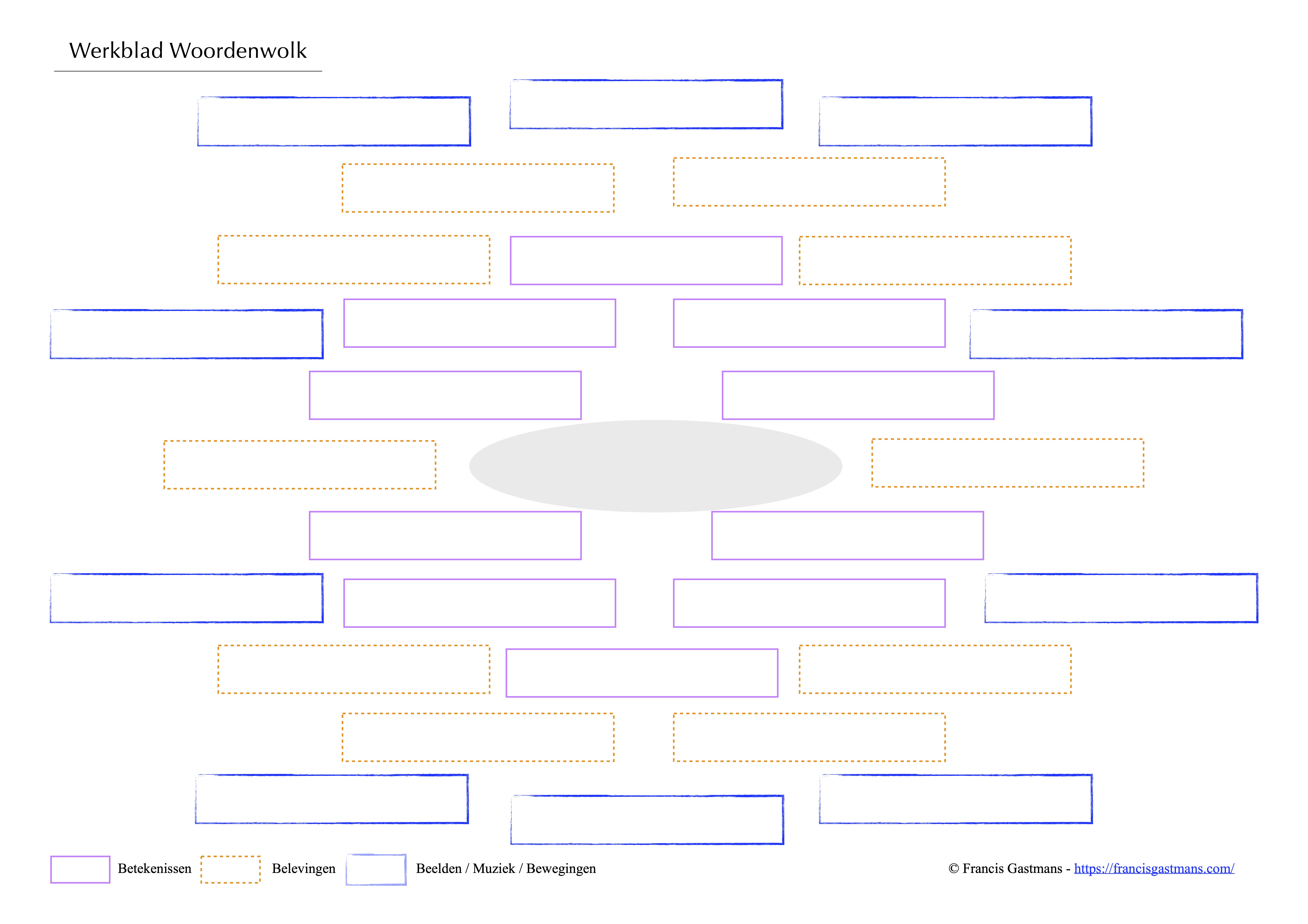 Ja, de eerste keer dat je een woordenwolk maakt is dat lastig. Je voelt dat je woordenschat tekort schiet, dat je niet geleerd hebt om met een bredere blik naar de vele werelden van de werkelijkheid te kijken dan met een aangeleerde rationele bril. Ik heb makkelijk praten want ik doe dit al jaren en ben bedreven in het tekenen van een woordenwolk. Uiteraard heb ik ook nu mijn eigen woordenwolk gemaakt. Die vindt je hier, maar nogmaals die geldt enkel voor mij, maar misschien kan ze je inspireren. Je mag me ook altijd vragen om je daarbij te helpen. Gewoon even bellen en langskomen en het is gratis (0497 54 98 70).