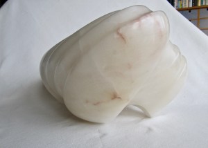 December 2022 – Schors van een kastanje en roze albast (47cm hoog)